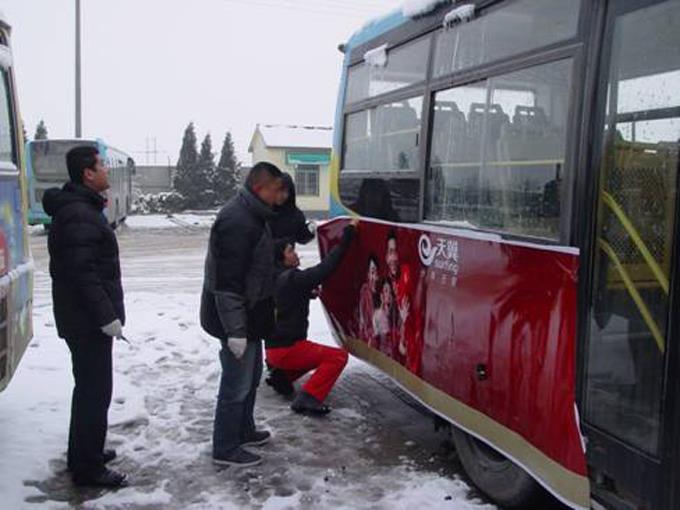 時值立春節氣,一場鋪天蓋地的大雪似乎讓春天的腳步放慢了些,但是公司廣告部制作人員的工作節奏卻沒有因此而減慢。為保證所有廣告畫面春節前能夠順利及時張貼完畢,他們冒著冰雪嚴寒,加班加點在各處車場緊張而有序地忙碌著。他們不分時段,根據車輛班次間隔來及時調整工作時間,白天時間調整不了就晚上加班,不畏風雪,不畏嚴寒,克服困難,積極肯干,他們用自己的工作熱情和干勁,迎接著春節的到來,確保了廣大客戶的切身利益,為新一年的工作開了個好頭。