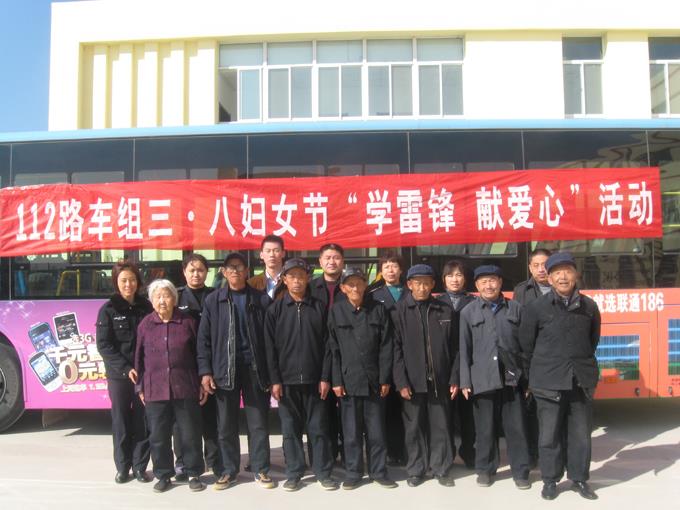 3月4日上午,在三八婦女節和雷鋒日即將到來之際,東營公交112路車組駕駛員毛紅、趙洪燕、隋云、李芹四名同志帶著她們在爭創公司文明示范線路評比中獲得的2000元獎金購買的食用油、米、面、雞蛋等一宗生活物品,來到了龍居鎮敬老院,代表車組15名姐妹為老人們送上了一份關愛,以學習雷鋒同志,弘揚雷鋒精神的實際行動喜迎三八婦女節的到來。
