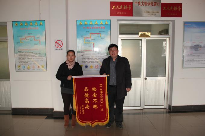 3月11日下午,華泰集團的田先生拿著一面寫有“拾金不昧、品德高尚”的錦旗來到市公交公司汽車一隊,感謝118路駕駛員丁慧師傅拾金不昧的高尚品德。據車隊了解得知,當日早上7時左右,田先生乘坐駕駛員丁慧駕駛的118路來東城辦理公務,下車后發現裝有1400元現金的錢包忘在了公交車上。他心急如焚,抱著試試看的想法來到車隊,詢問得知駕駛員丁慧師傅已將裝有1400元現金的錢包上繳車隊等待失主認領,車隊及時核對情況后,將錢物如數歸還。
