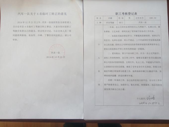市公交公司人保管理科啟動固定期限合同工轉正考核工作