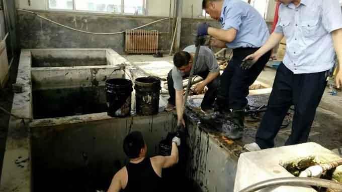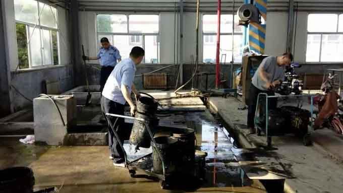 雷鋒小組的成員發揚不怕臟,不怕累的雷鋒精神,他們或兩人一伙,或三人一幫,先用水泵將沉淀池內的污水排空,隨后穿上水鞋跳入池中,用鐵桶一桶一桶的將半泥半水的污垢舉提上來再用小推車一趟趟的推走,最后用清水將沉淀池進行了洗涮。