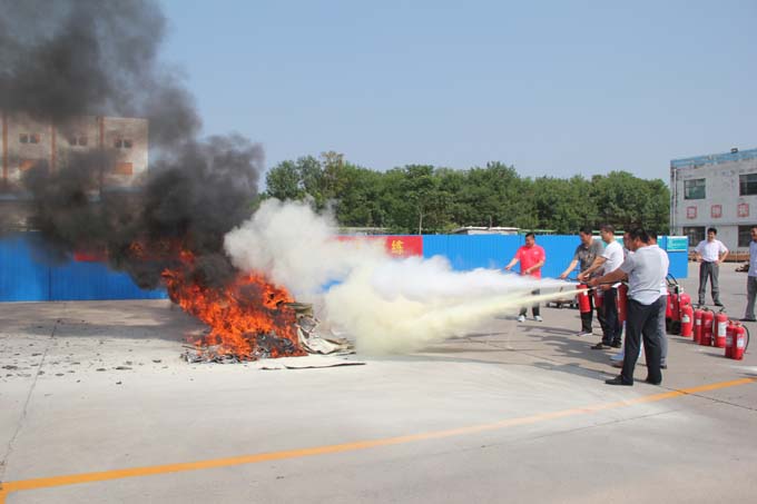 演練開始前安稽科科長王清峰結合單位特點和實際案例,詳細講解了發生火災時人員疏散、火場自救逃生、滅火器如何使用等消防知識。演練中,參加演練人員分批進行了消防滅火演習。