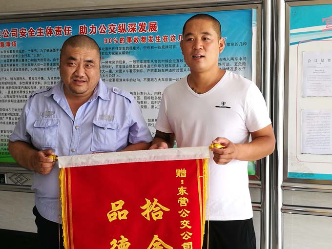 2017年8月21日下午17:30分左右,市公交公司汽車七隊駕駛員楊寶海在執行102路任務的時候,在車廂內撿到錢包并及時通知了車隊領導。當失主抱著試探的心態撥通了公交七隊調度室電話,根據失主描述的情況,確認錢包在公交公司汽車七隊。 失主火速趕到公交車隊后,親自打開錢包一看有原來的現金5630元、七張銀行卡和身份證,失主喜出望外,激動的緊緊地抱住了駕駛員。 事后,失主拿著錦旗來到市公交公司汽車七隊,找到車隊領導和駕駛員,感謝拾金不昧的好司機---楊寶海。
