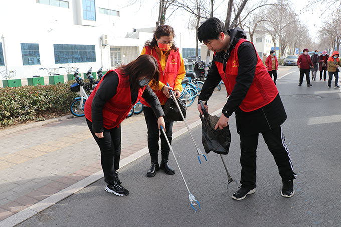 天氣漸暖,志愿者們干勁十足。帶上勞動衛生用具,有的用掃帚清掃路面,有的拿著鐵夾忙把路面的廢紙、枯樹枝等裝進垃圾袋。路邊垃圾里數量最多的就是各種煙頭,大多塞在路邊的縫隙里,難以清理,有的志愿者直接蹲下身子用手細細撿起,還有路面上的雜草,大家拿著鐵锨和大掃把進行了徹底清理。通過近兩個小時的清掃工作,網絡化管理路段周邊的環境變得更干凈、更整潔了。