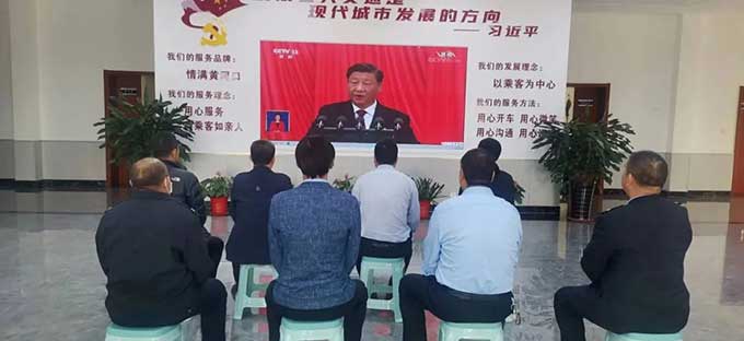 10月16日上午10時,市公交公司黨委組織干部職工準時收聽收看黨的二十大開幕式直播盛況。