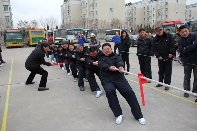 為了加強公司各單位之間的聯(lián)系,增強職工的集體榮譽感,提高職工的身體素質(zhì),市公交公司分別于11月28、29日組織了拔河比賽。比賽分男女兩隊,男子組有九個代表隊,女子組有六個代表隊,共計一百五十多人參加了此次比賽。