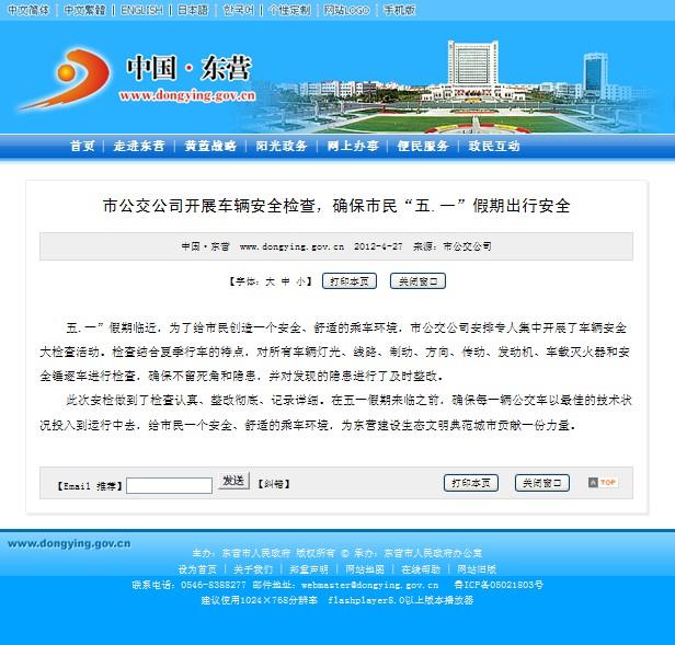 2012年4月27日東營政府網站報道