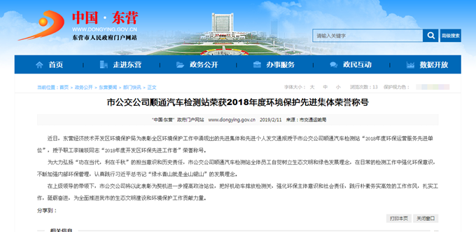 2019年2月11日東營市政府網站報道