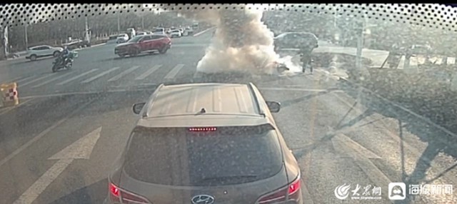 眼看火苗隨風(fēng)越燒越旺,危急時(shí)刻,17路駕駛員張曉良駕駛著魯E97102公交車運(yùn)行途經(jīng)此處等紅燈,遠(yuǎn)遠(yuǎn)地看到前方冒著火光和滾滾濃煙的電動(dòng)車,他拿起車載滅火器沖了過(guò)去,“當(dāng)時(shí)路上的行人和車輛較多,情況十分的危急。”張曉良回憶說(shuō),他沒(méi)顧上仔細(xì)查看,把一瓶滅火器噴完,便抓緊回到車上繼續(xù)運(yùn)行。